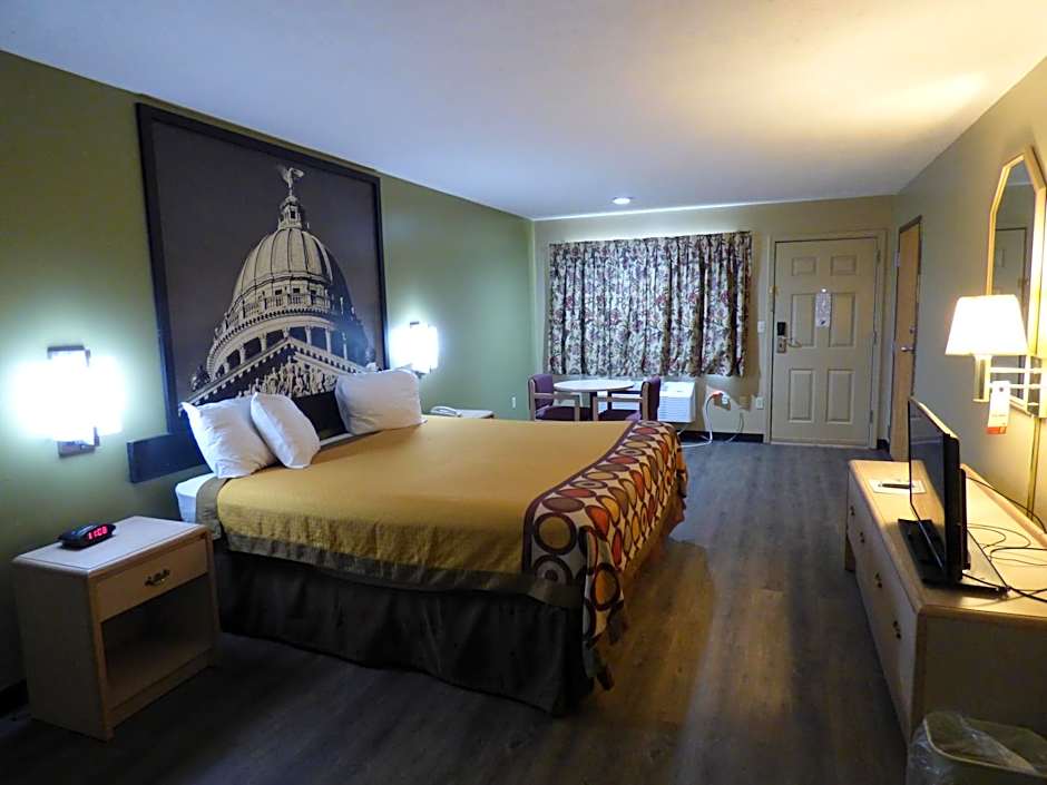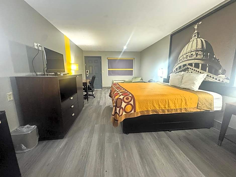 This nonsmoking room features a microwave, refrigerator and cable TV.